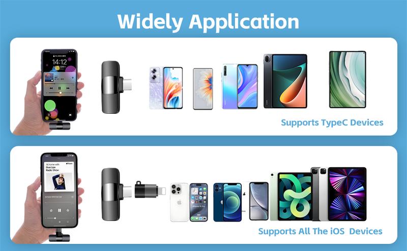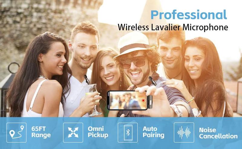 - [Plug & Play Wireless Microphone with 65ft (20m) Range]:No Bluetooth/Apps!Simply plug the mini microphone receiver into your iPhone (Lightning) or Android (USB-C), turn on the mic, and start recording.Stable signal covers most indoor/outdoor scenarios (vlogs, interviews, live streams) with uninterrupted transmission up to 65ft (20m).