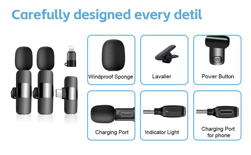- [Dual-Interface for All USB-C Devices]:No Adapter Hassle!This wireless lavalier microphone works seamlessly with USB-C iPhones, iPads, Android phones, and computers.Charge your phone while recording - keep power and creativity flowing.